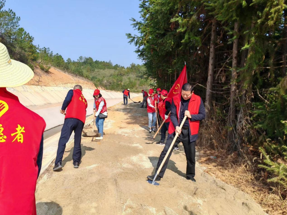一名党员就是一面旗帜。活动中,党员干部充分发挥先锋模范作用,手持铁铲、锄头、打草机等工具,修整路面,清除杂草,疏通水沟,清理枯枝,共修整路面600余米,清除杂草300平方米,疏通天沟、排水沟300米,张贴和发放宣传单1000余份。