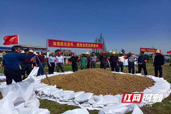 湘阴县鹤龙湖镇开展防汛抢险应急演练。