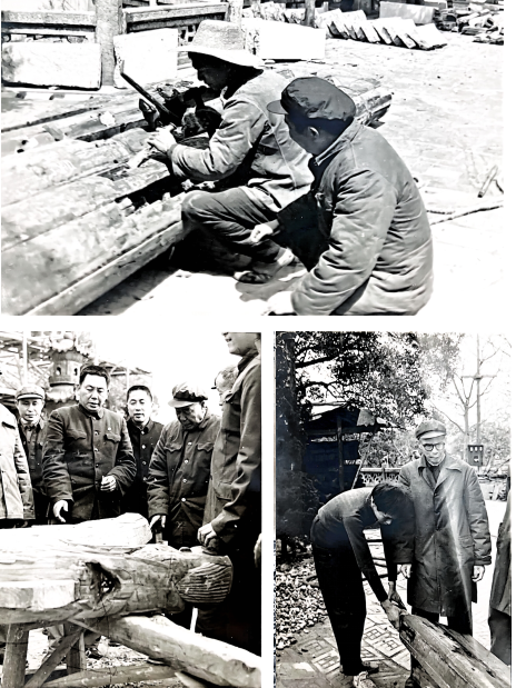 1983至1984年,岳阳楼大修,工人研究榫卯结构