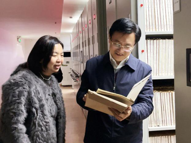 2026年2月27日下午,岳阳市政府副市长邵锋一行来到岳阳市档案馆调研指导工作,实地察看馆藏资源、展览展示与档案服务情况。市档案馆党组书记、馆长张莉等陪同。