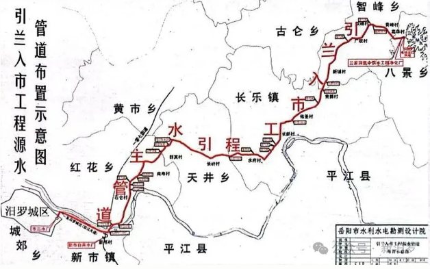 历经充分酝酿、周密论证和科学设计,2012年,汨罗市委、市政府以农村饮水安全工程实施为契机,将“引兰入市”工程列为当年“一号工程”。根据规划,该工程利用兰家洞水库与城区之间60米的自然落差,通过建设取水头部、铺设优质环保PE供水管道,将兰家洞水库、向家洞水库的水引至新市镇,继而输送至城区,并逐步辐射沿线及周边乡镇。