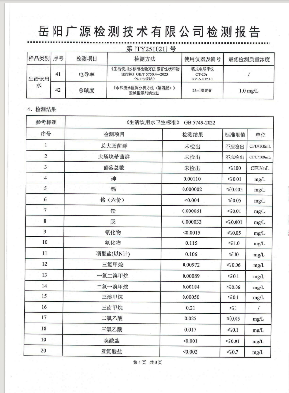 2025年10月岳阳市水务集团出厂水水质检测月报表
