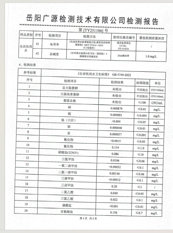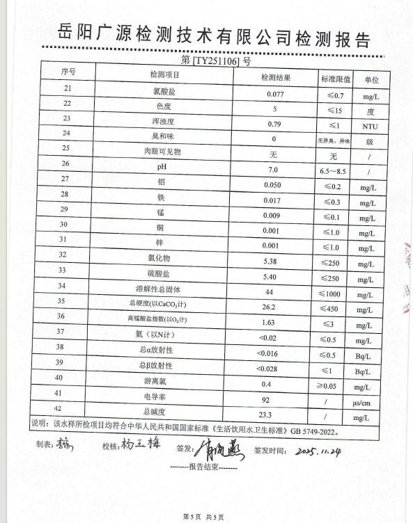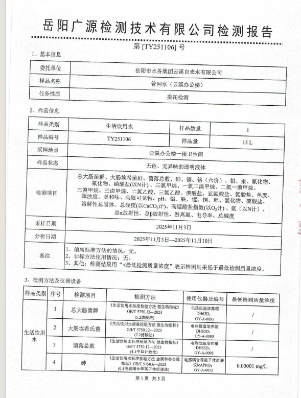 2025年11月岳阳市水务集团管网水水质检测月报表