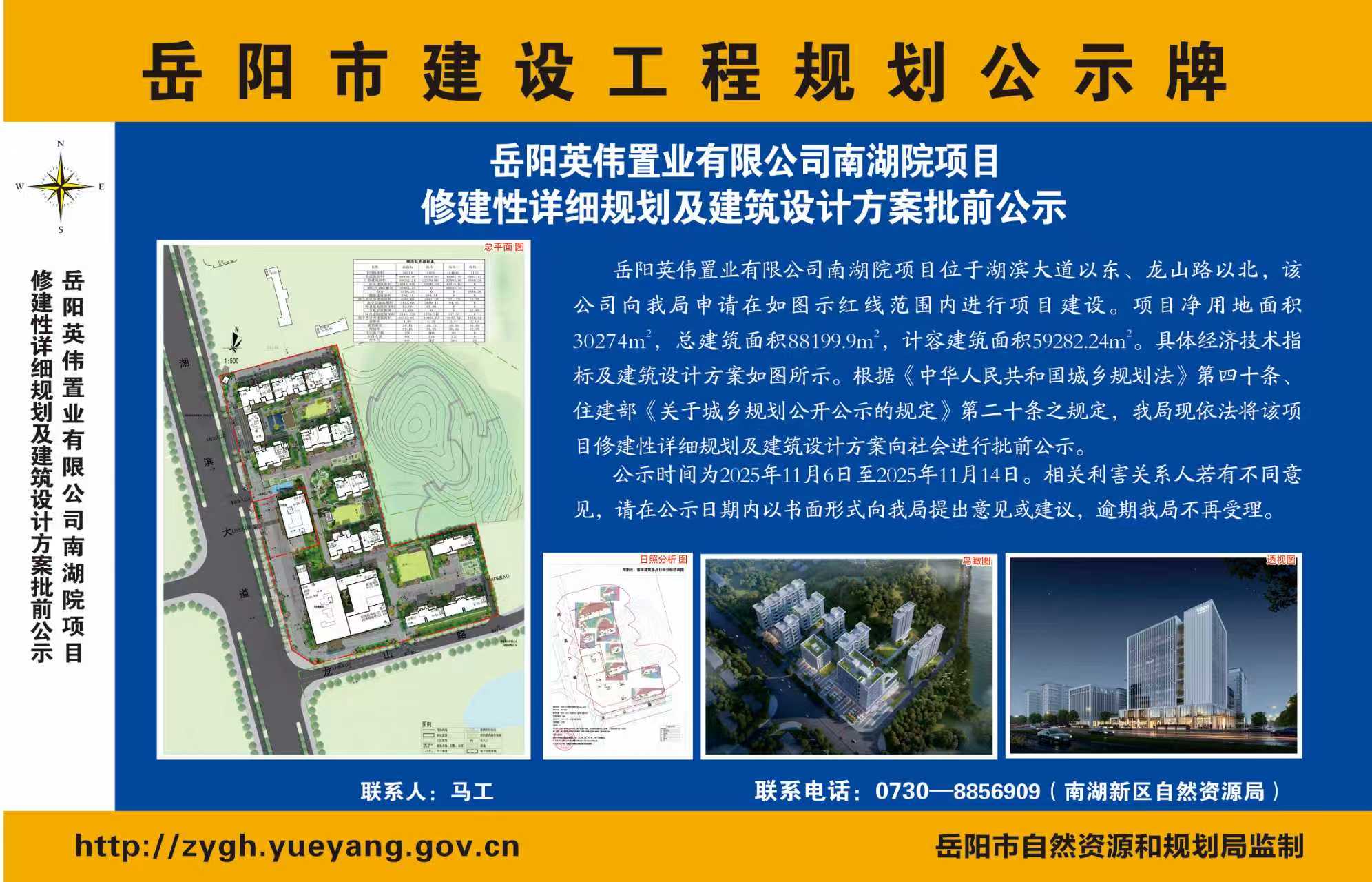 岳阳英伟置业有限公司南湖院项目修建性详细规划及建筑设计方案批前公示