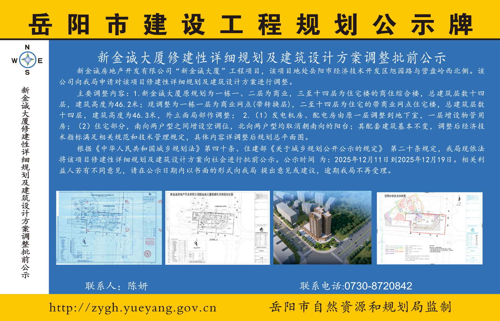 新金诚大厦修建性详细规划及建筑设计方案调整批前公示