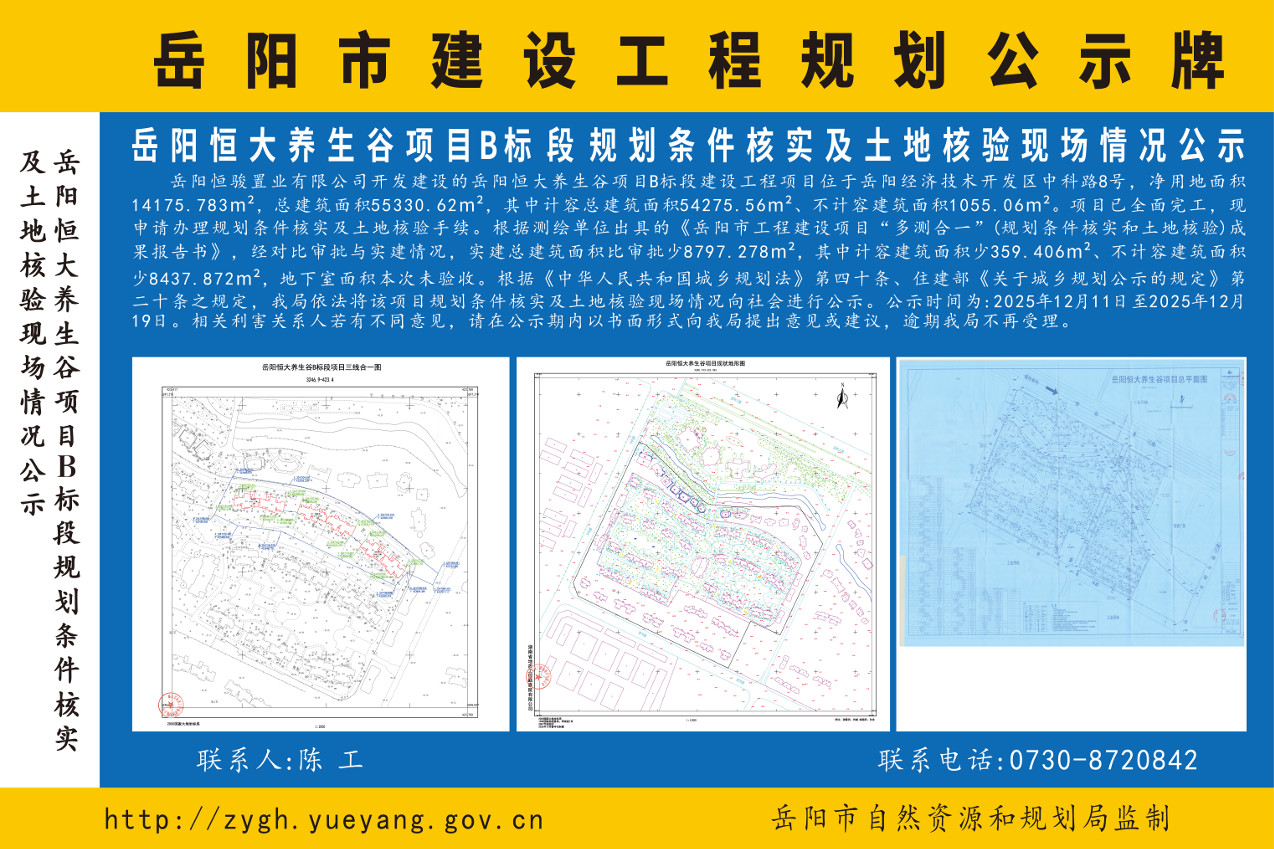 岳阳恒大养生谷项目B标段规划条件核实及土地核验现场情况公示