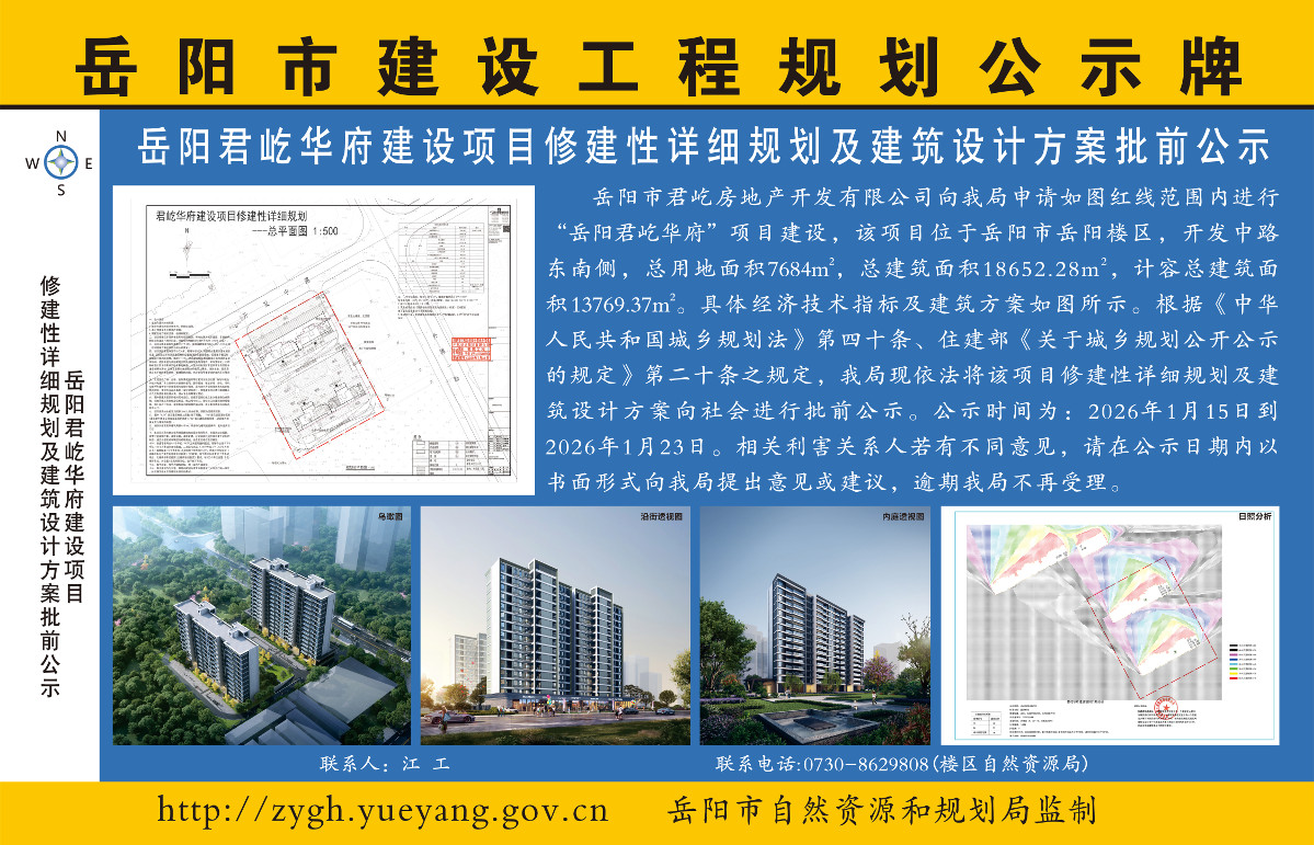 岳阳君屹华府建设项目修建性详细规划及建筑设计方案批前公示