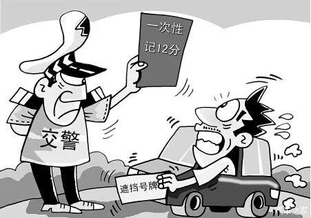 根据《机动车驾驶证申领和使用规定》附则规定:机动车驾驶人有上道路行驶的机动车未悬挂机动车号牌的,或者故意遮挡、污损、不按规定安装机动车号牌的违法行为,一次性记12分。