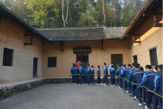 清晨的阳光洒在金黄的油菜花和青色瓦片上,学生们两人并排为列缓缓进入毛主席故居,在这片主席曾生活过的故土上寻找着伟人成长的密码,蜿蜒的队伍如流动的血液,延续着伟人“孩儿立志出乡关,学不成名誓不还”的伟大决心。