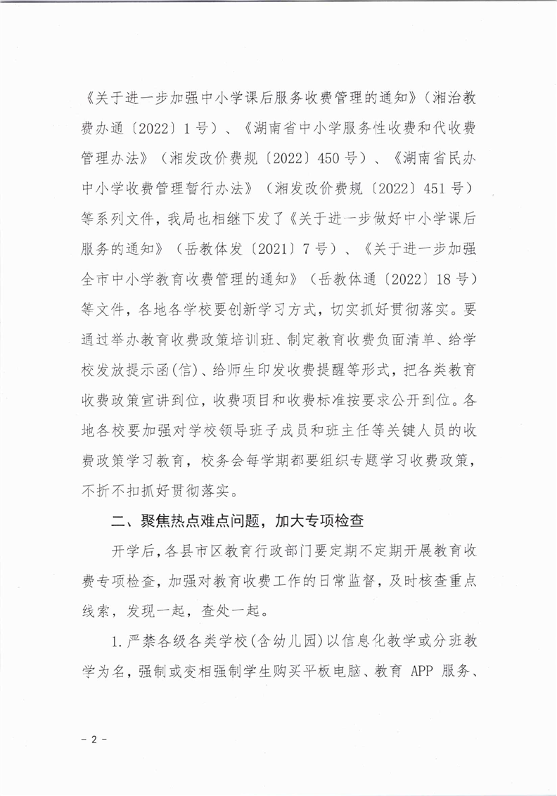 岳阳市教育体育局关于进一步加强我市2023年治理教育乱收费工作的通知