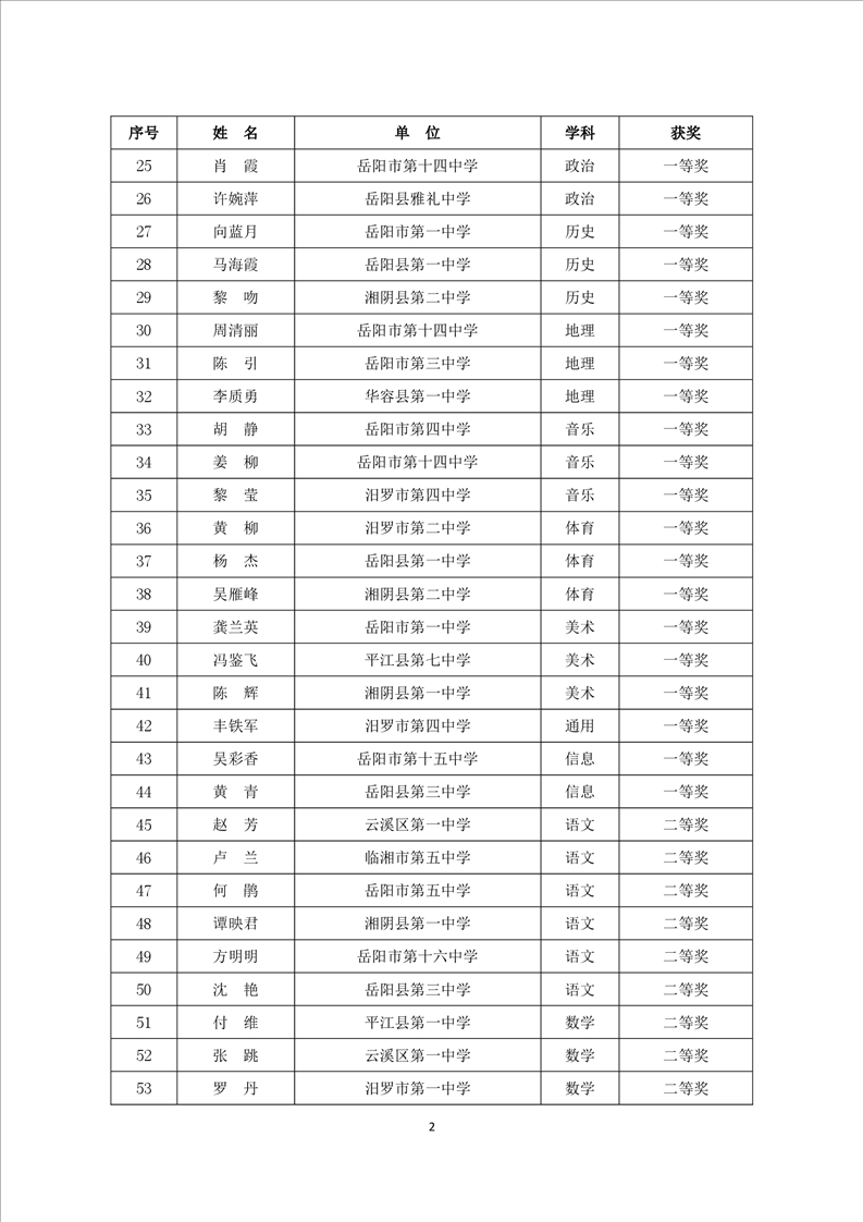 关于2021年岳阳市“金鹗奖”教师教学竞赛获奖情况的通报(岳教体通〔2021〕106号)