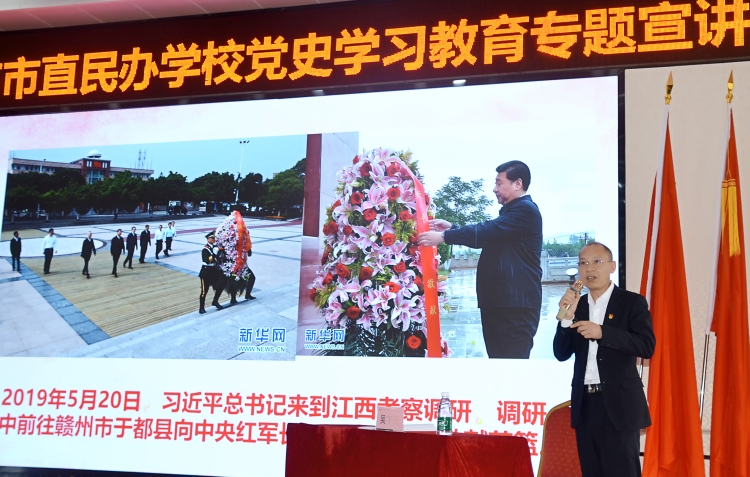 陈映军科长要求全体党员在学史明理中为党育人守初心,立德树人担使命,将百年党史与三湘大地的红色伟人、英雄壮举、革命事件、感人事迹结合起来,把学党史、明真理、悟初心融入教育工作中,引导学生以史明志,以史促行,当好红色基因的传承者、实践者,为实现中华民族伟大复兴的中国梦赓续前行,奋楫争先。
