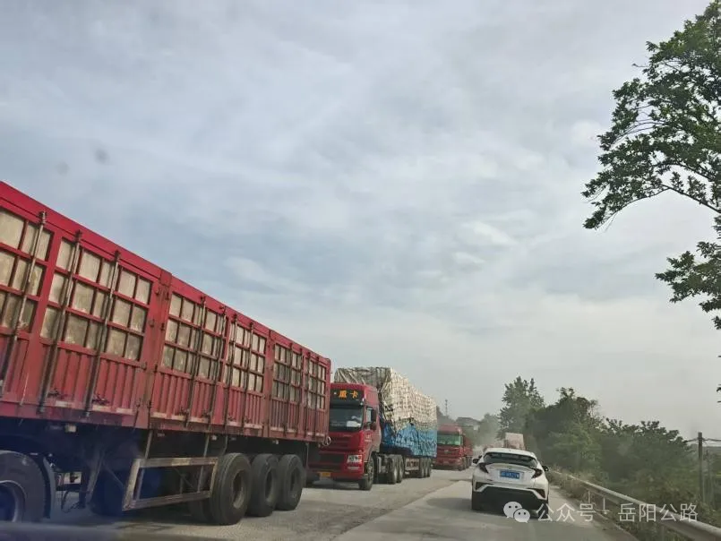 (五一期间107国道岳阳段交通繁忙)