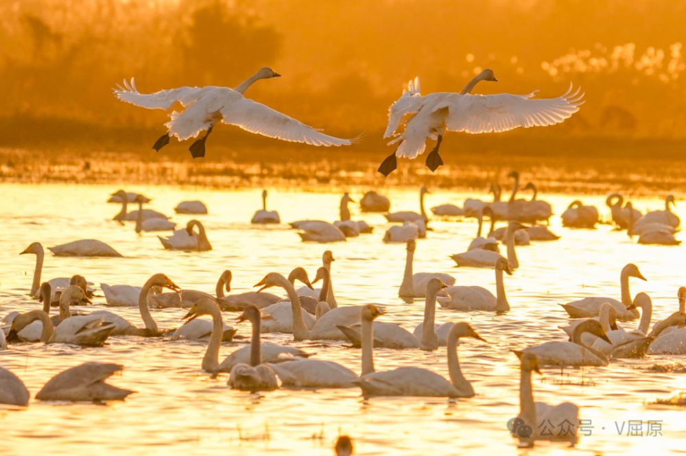 冬日的岳阳,藏着一处 “鸟的天堂、人的乐园”屈原管理区东古湖晨光熹微中,万余西伯利亚小天鹅舒展银白羽翼,掠过如镜湖面,与冬日暖阳、连片稻田、静谧湿地相映成趣,构成一幅灵动绝美的生态画卷。