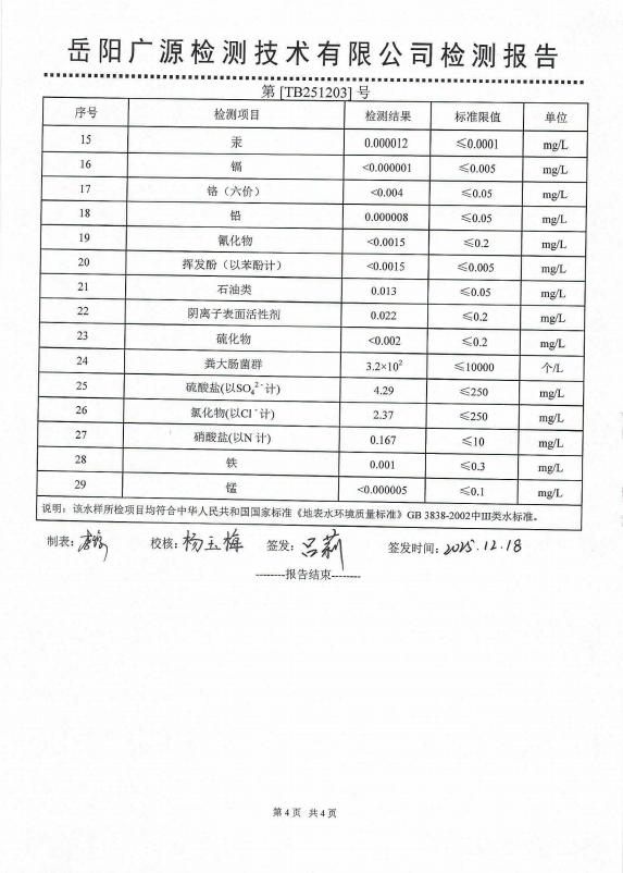 2025年12月岳阳市水务集团水源水水质检测月报表