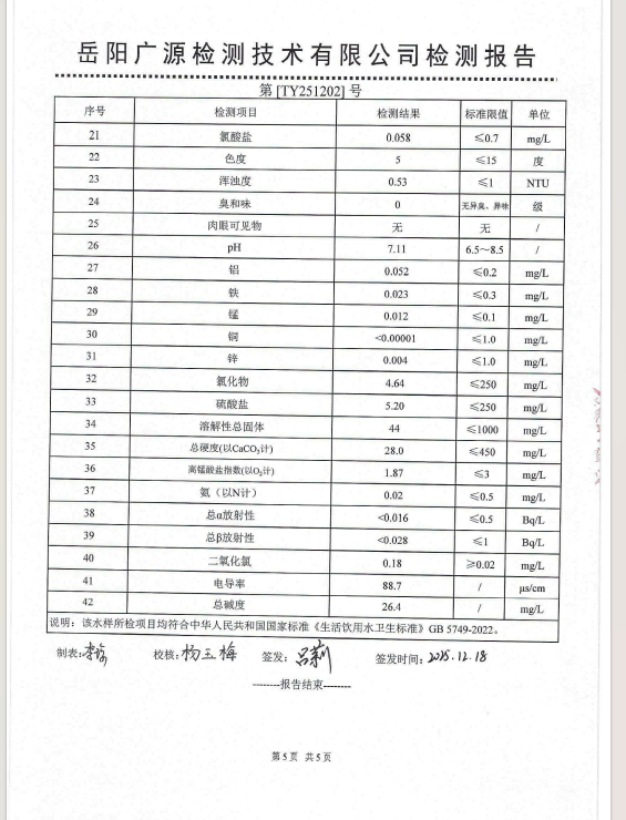 2025年12月岳阳市水务集团管网水水质检测月报表