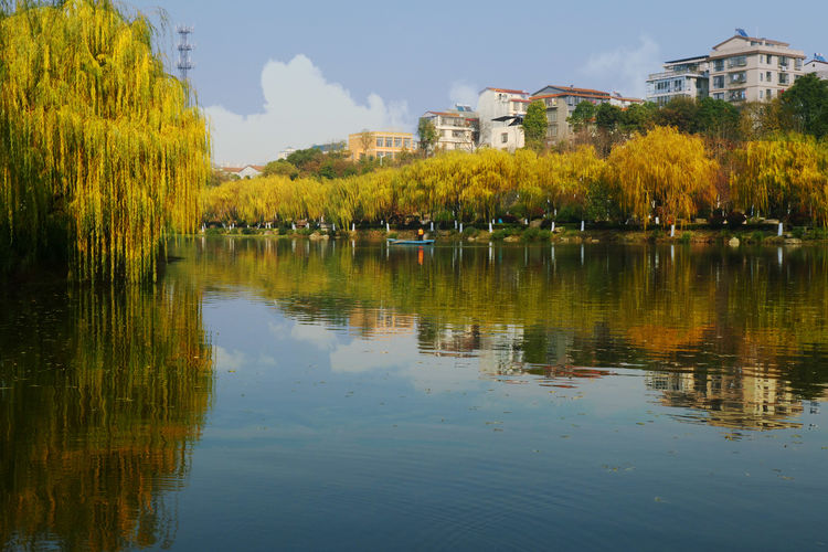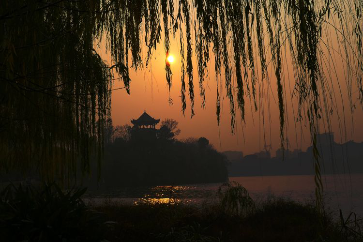 对杨柳的溢美之词,贺知章的《咏柳》当首屈一指“碧玉妆成一树高,万条垂下绿丝绦。不知细叶谁裁出,二月春风似剪刀。”陆游的“红酥手,黄縢酒,满城春色宫墙柳”……也是脍炙人口。描写刻画柳树诗句,总离不开春天和绿色。虽有柳永的“杨柳岸晓风残月”咏秋天杨柳的佳句,却添了离情,多了别绪,残月破碎,晓风清冷。秋天在文人的眼里,无一不冷清凄苦,就如范仲淹笔下的“碧云天,黄叶地,秋色连波,波上寒烟翠。山映斜阳天接水,芳草无情,更在斜阳外”。