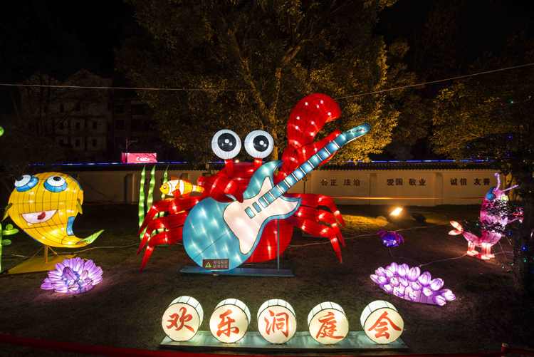 鱼米之乡灯展,将岳阳丰富的湖鲜特产,螃蟹、小龙虾、藕、各种鱼类特产为元素进行创作,时尚、浪漫、互动、卡通,让游人乐在其中。