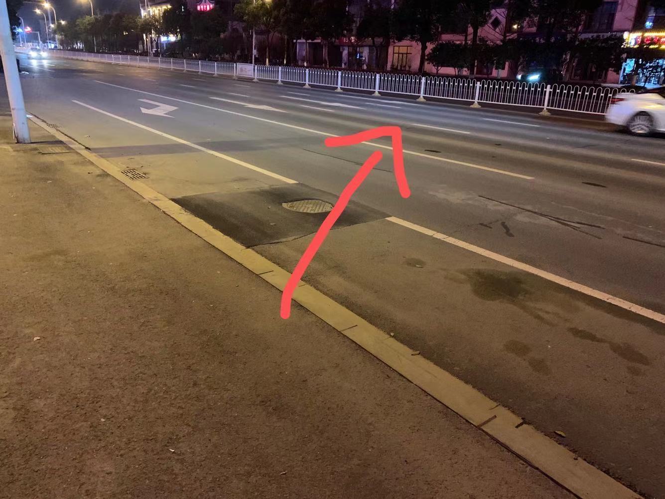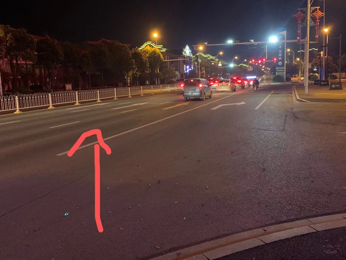这条线的意义在哪里,别人右转,不是应该弄条虚线么,岳阳楼区其他路段都是虚线,这里弄条实线,希望有关部门尽快处理,特别是下雨天完全看不清楚,很容易压线。