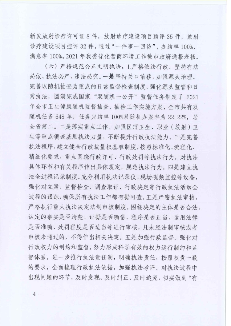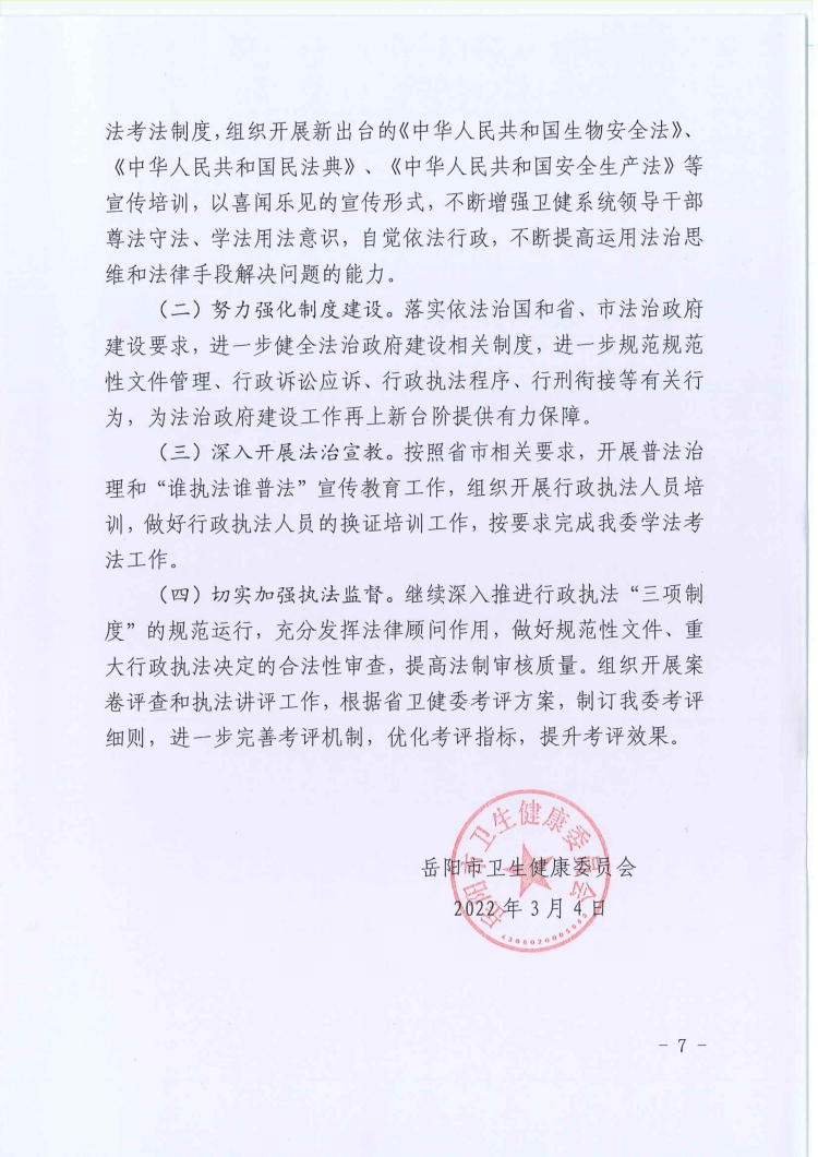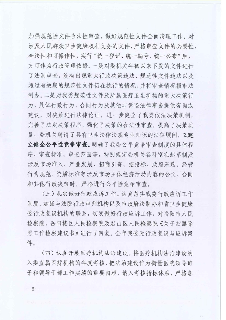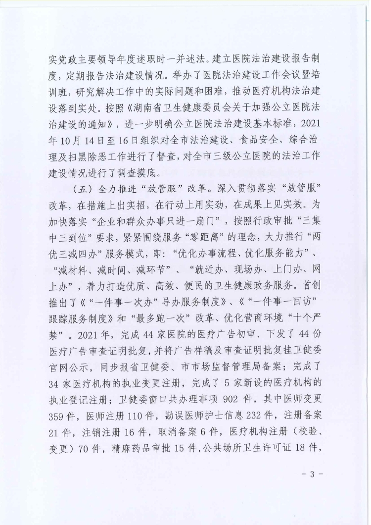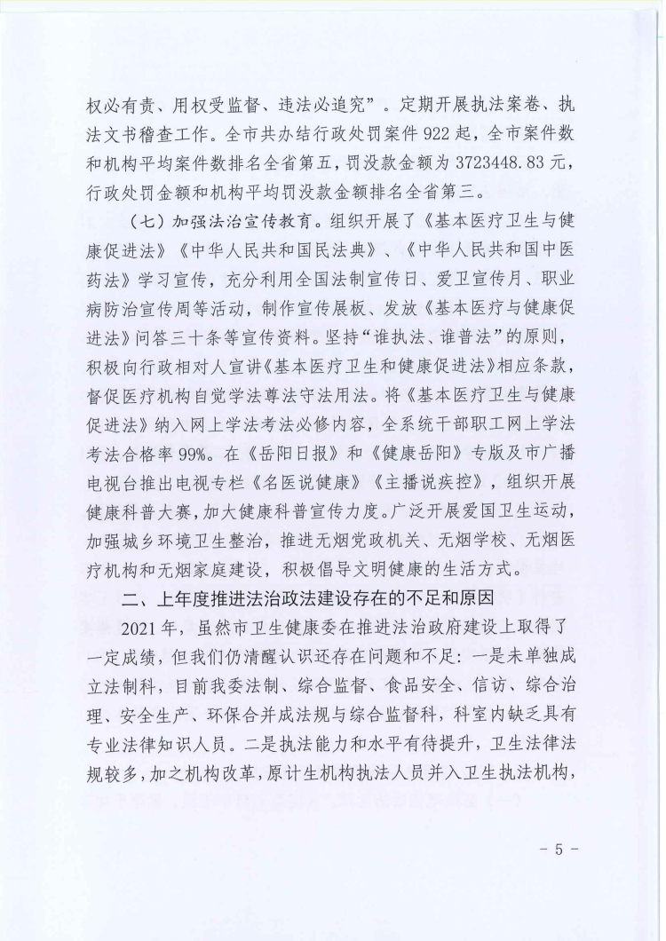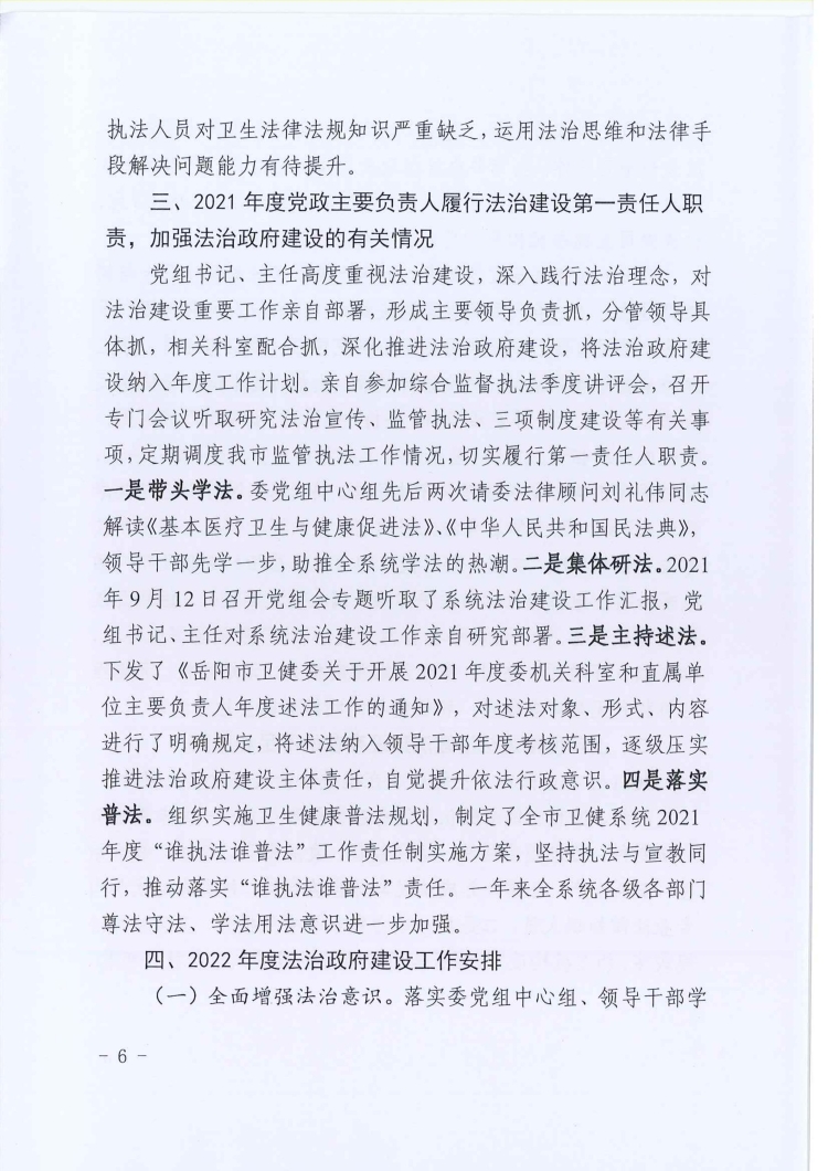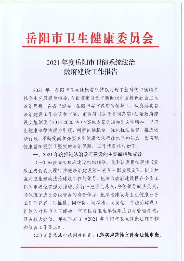 2021年度岳阳市卫健系统法治政府建设工作报告