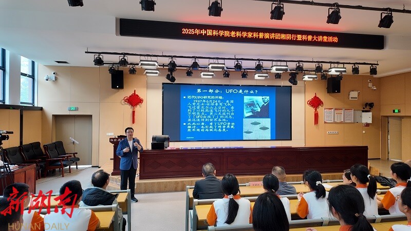 此外,科普演讲团成员、中国科学院国家天文台研究员、博士生导师王俊杰先后在湖南师范大学附属金龙学校和湘阴二中,带来了《从太阳系到可观测宇宙》与《UFO与外星生命探索》两场科普讲座,用生动的语言和丰富的影像资料,引领学生们从熟悉的太阳系出发,漫游至宇宙的深邃边缘,并以严谨的科学视角深入探讨地外生命探索这一前沿领域。