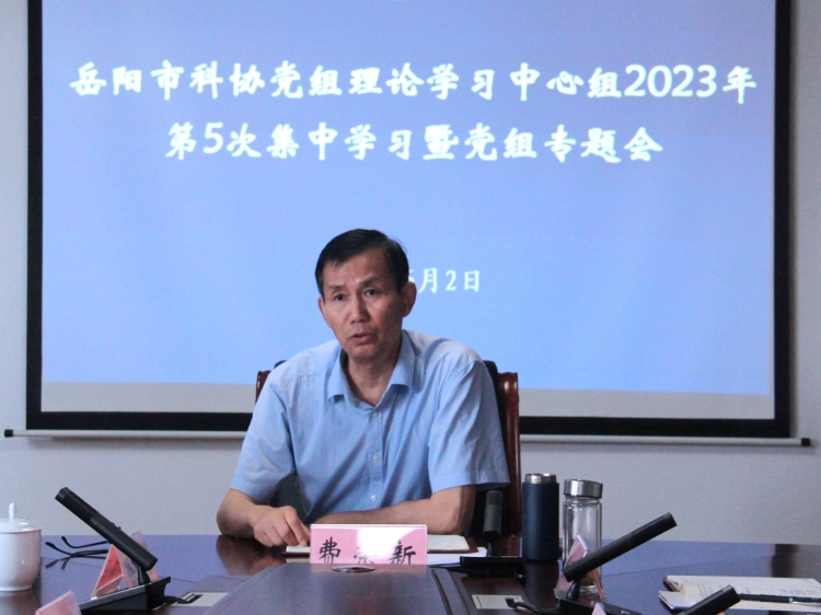 6月2日上午,岳阳市科协举行党组理论学习中心组2023年第五次集中学习暨党组专题会议。党组书记、副主席费荣新主持会议并讲话,主席陈跃平、市科协党组理论学习中心组成员和机关各部室、事业单位主要负责人参加。