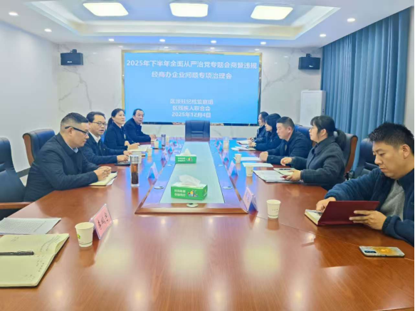 为深入贯彻落实党中央关于全面从严治党的战略部署,进一步压紧压实管党治党政治责任,根据《党委(党组)落实全面从严治党主体责任规定》《纪检监察机关派驻机构工作规则》及区纪委监委工作要求,12月4日下午,云溪区残联党组与区纪委监委派驻区教体局纪检监察组共同组织召开2025年下半年全面从严治党专题会商暨违规经商办企业问题专项治理会议。区纪委常委、监委委员刘伟到会指导,区残联党组书记、理事长叶炼钢主持会议。