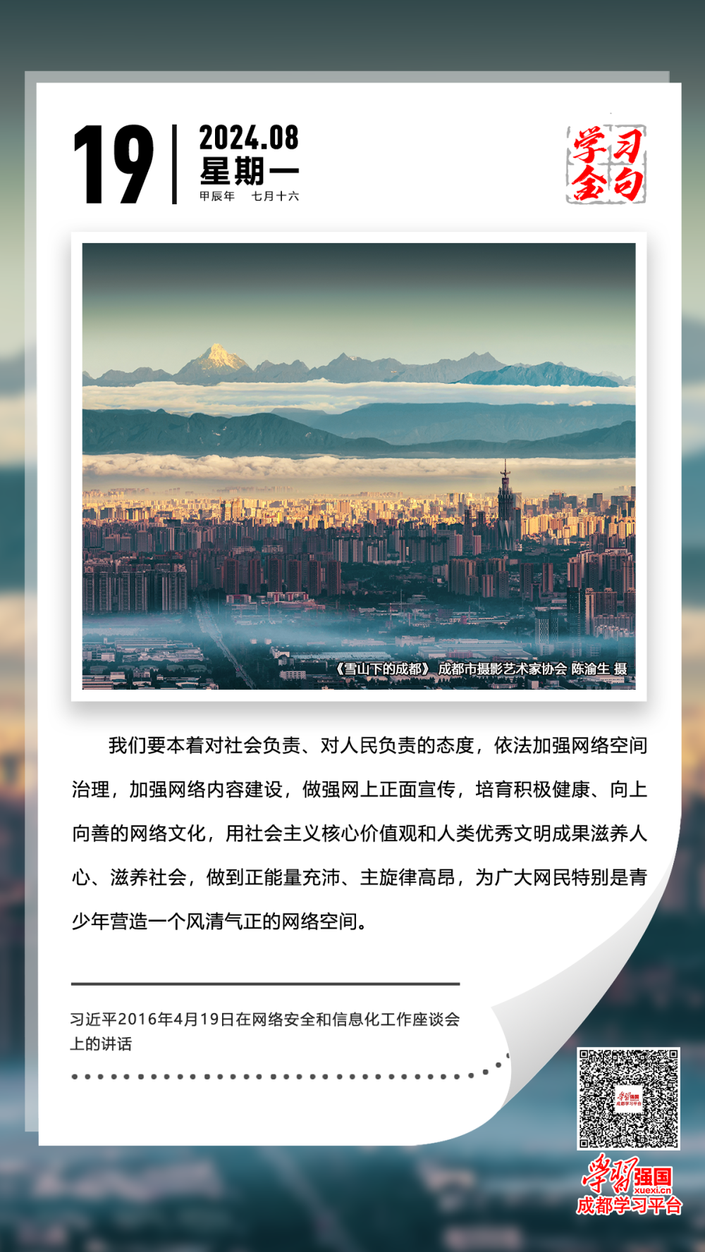 【学习金句】培育积极健康、向上向善的网络文化