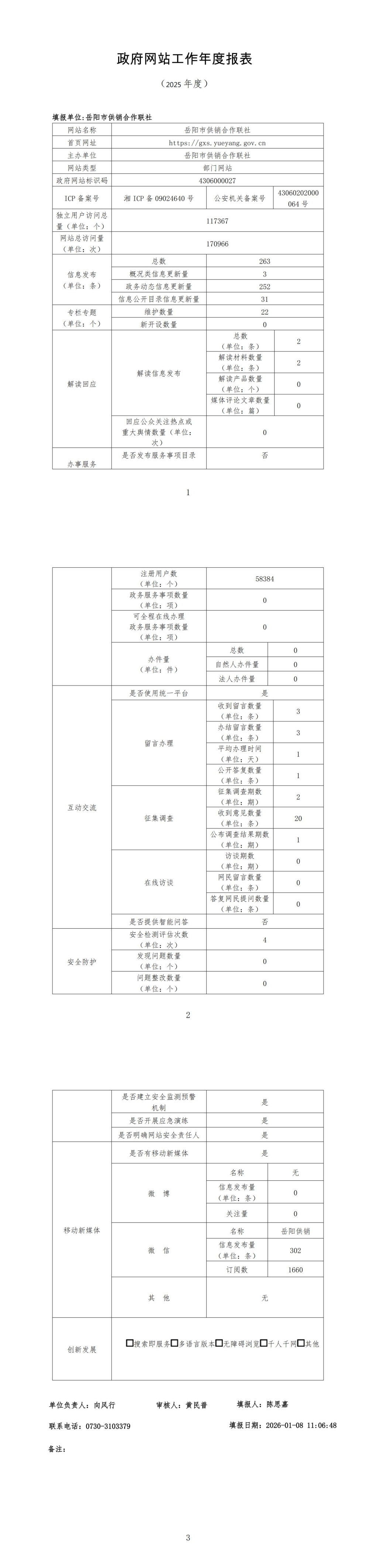 市供销合作联社2025年度政府网站工作报表