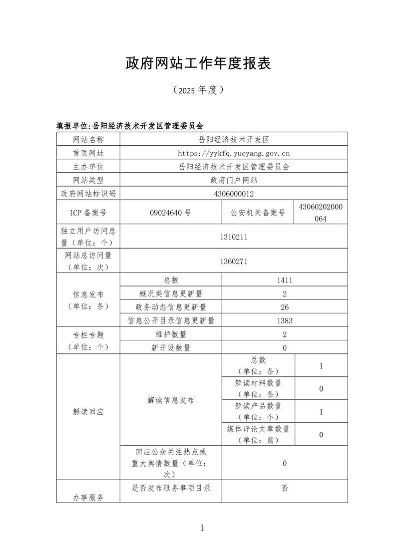 岳阳经济技术开发区2025年度政府网站工作年度报表