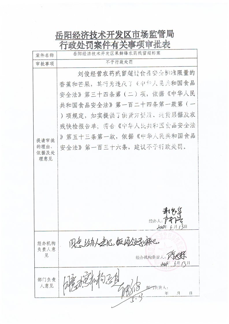 岳阳经济技术开发区果鲜锋农药残留超标案