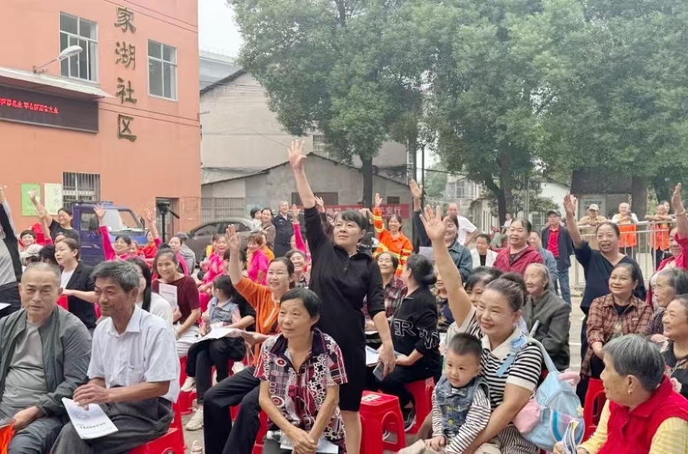 9月30日上午,岳阳楼街道吉家湖社区服务中心门前传来阵阵欢歌笑语,这里正在举行由岳阳楼街道志愿者和谐宣讲团组织的庆国庆、迎中秋社科普及宣讲会,吸引了100多名社区邻里居民踊跃参加,现场洋溢着快乐的节日气氛。