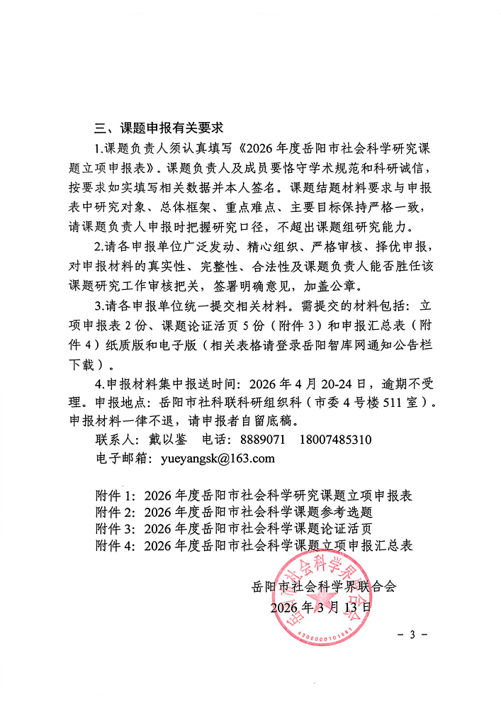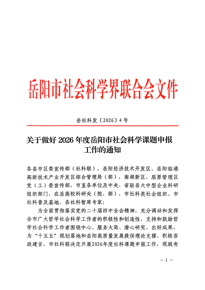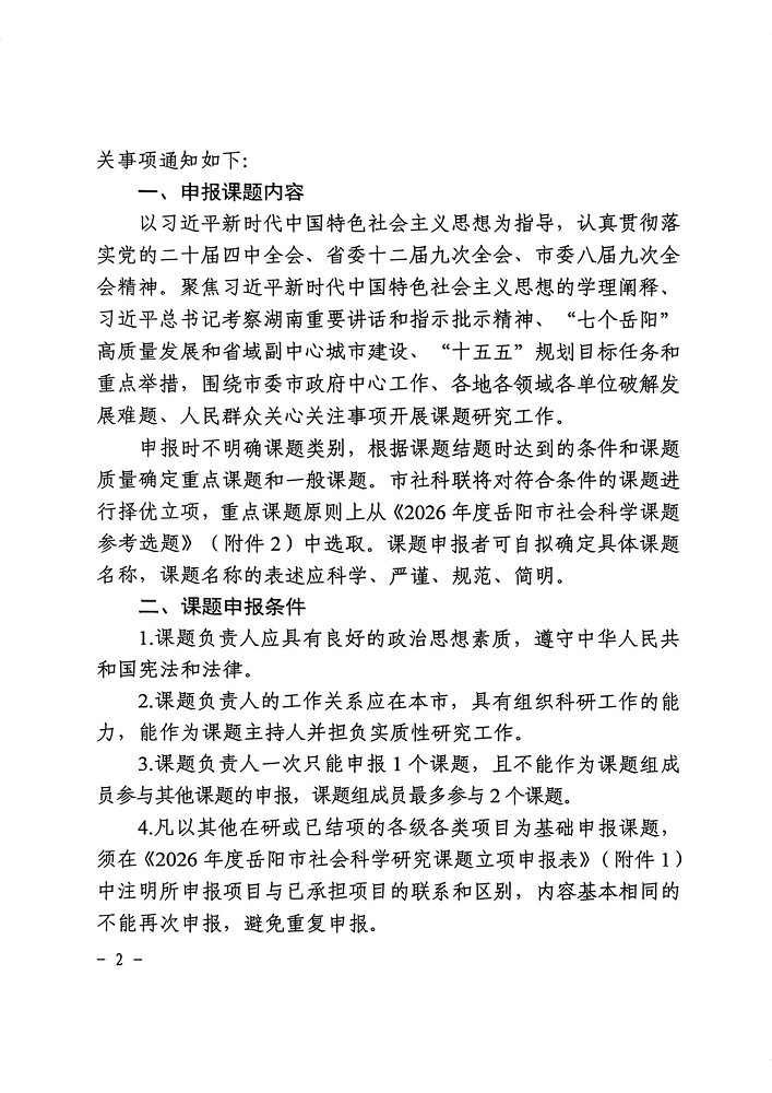 关于做好2026年度岳阳市社会科学课题申报工作的通知
