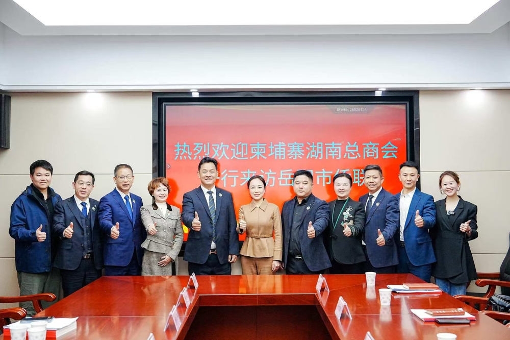 高鸽子柬埔寨湖南总商会一行表示欢迎,对商会为岳阳抗洪救灾捐款捐物的乡梓深情以及长期以来为促进岳阳高水平对外开放作出的积极贡献表示感谢。她说,岳阳历史悠久、交通便利、富饶美丽、开放包容。当前,岳阳正深入学习贯彻党的二十届四中全会精神,推动“1+3+X”现代化产业体系提质升级,加快建设制造强市、质量强市、网络强市,奋力开创中国式现代化“七个岳阳”新局面。希望商会继续发挥桥梁纽带作用,与岳阳市侨联加强沟通联系,深化岳阳市与柬埔寨在商贸投资、经济协作、文化交流、科技创新等领域的务实合作,进一步激活湘柬跨境合作的新动能,为岳阳高质量发展与中柬友好合作注入更加强劲的力量。