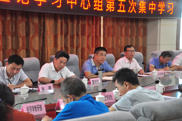 9月12日,市委党校校委理论学习中心组举行了以 “深入学习领会中国特色社会主义进入新时代和我国社会主要矛盾发生历史性变化的重大政治判断”为专题的2018年度第五次集中学习,会议由常务副校长王伊亮同志主持,全体班子成员、调研员、各处室负责人参加了学习。