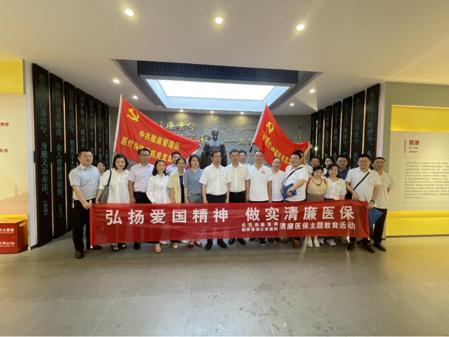 为深入学习贯彻党的二十大精神, 落实全面从严治党,加强新时代党员干部爱国主义教育,进一步推进清廉机关建设,激发和提振党员干部精气神,6月20日,市医保局与屈原管理区医保局开展党建共建活动,联合组织党员干部在屈原、湘阴等地开展廉政教育主题活动。