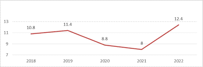 图6 2018-2022年城镇居民人均可支配收入及增速
