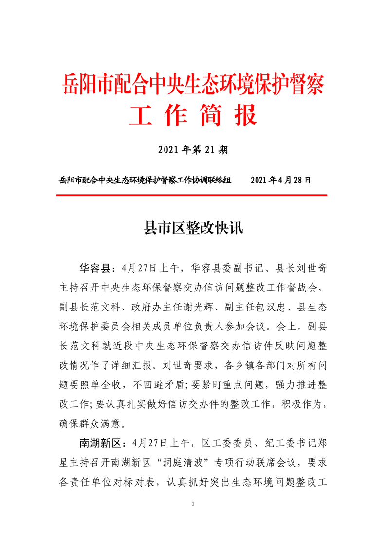 岳阳市配合中央生态环境保护督察工作简报第21期