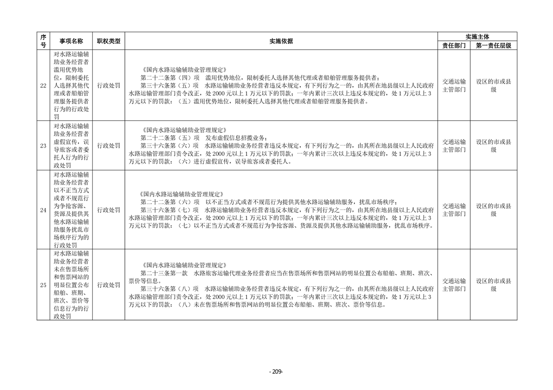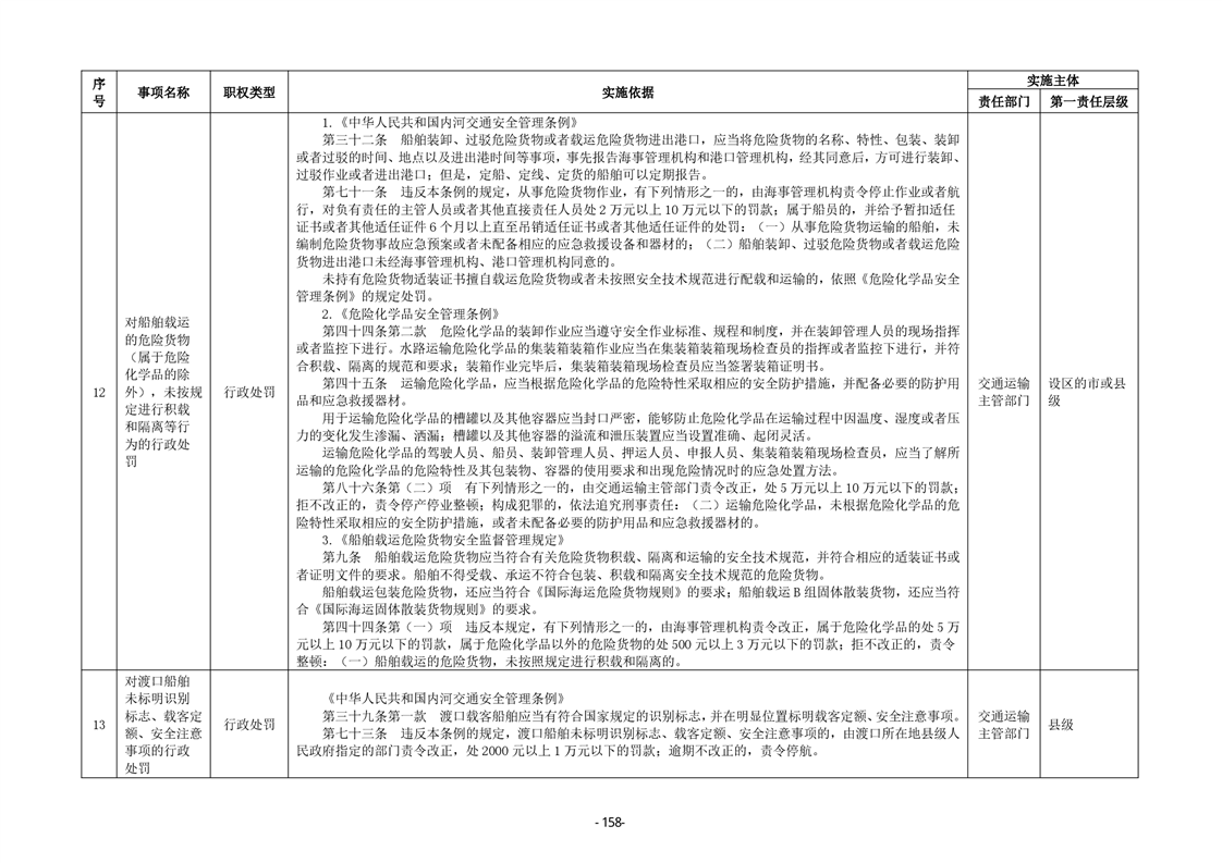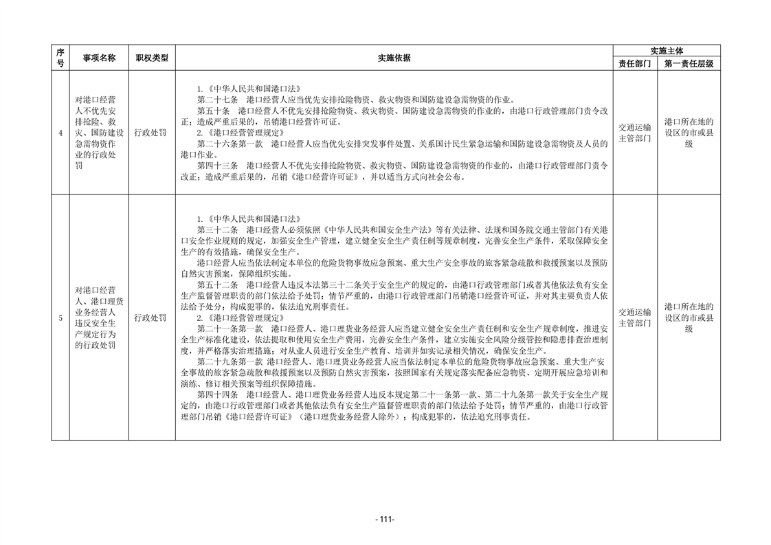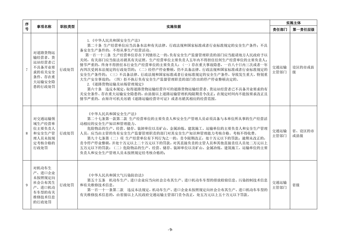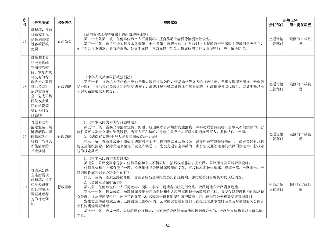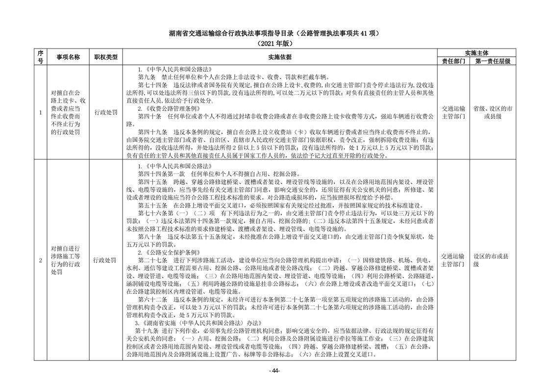 湖南省交通运输综合行政执法事项指导目录(2021年版)