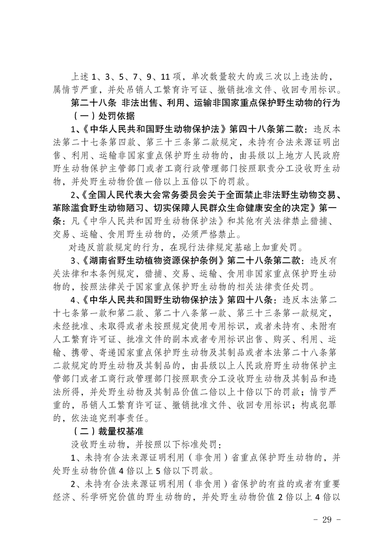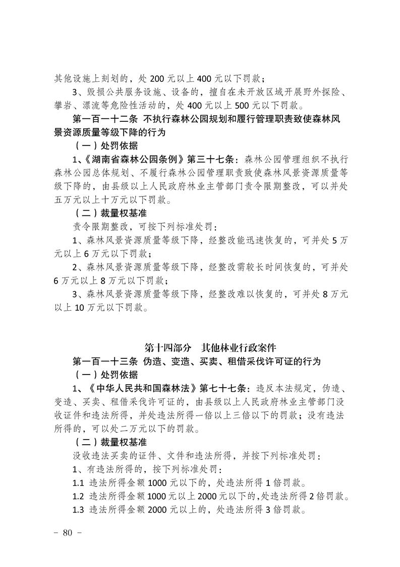 湖南省林业局关于印发《湖南省林业行政处罚裁量权基准》的通知(湘林法〔2020〕5号)