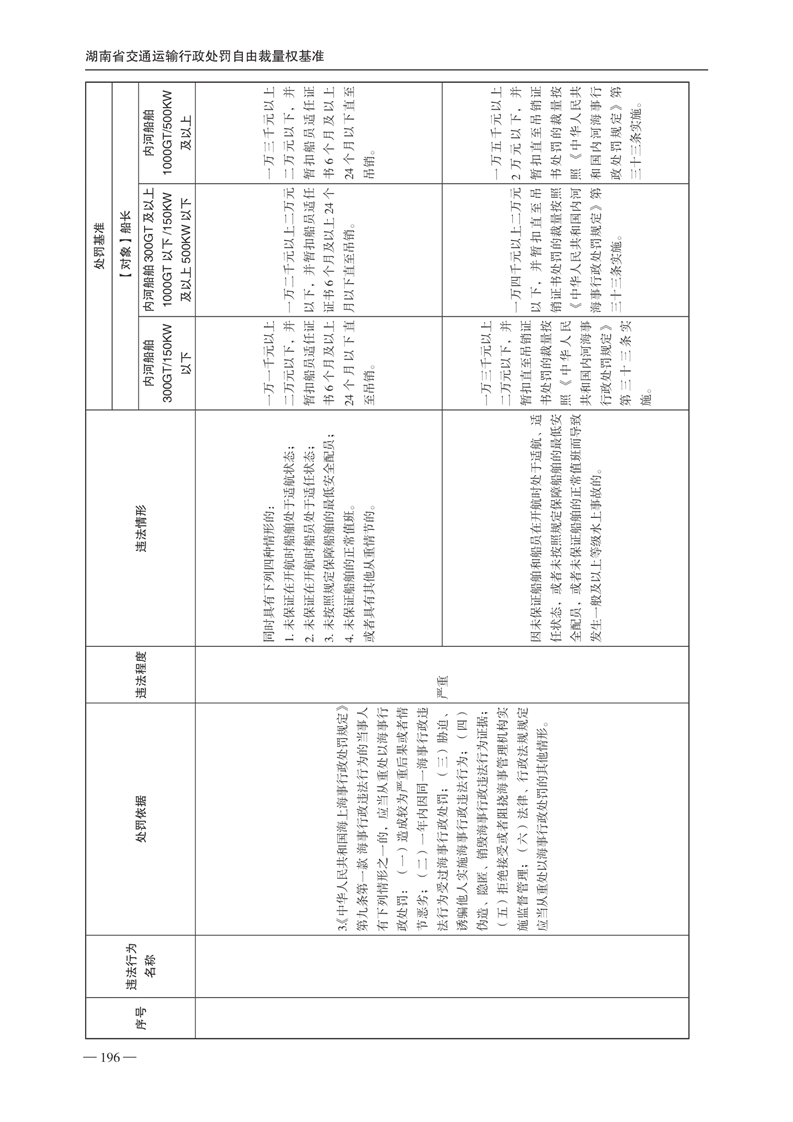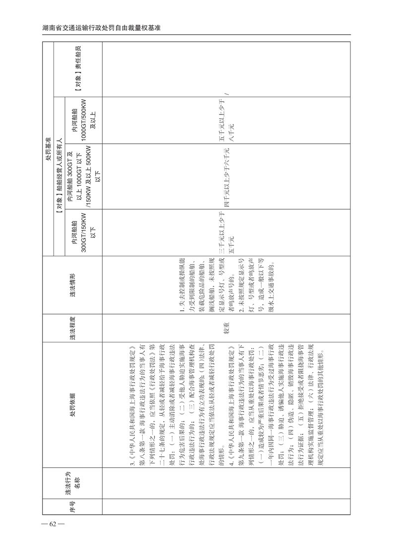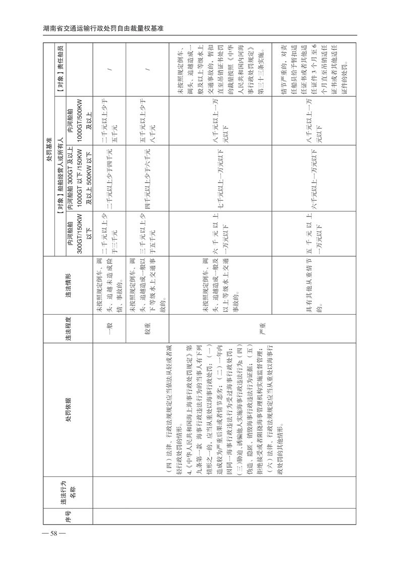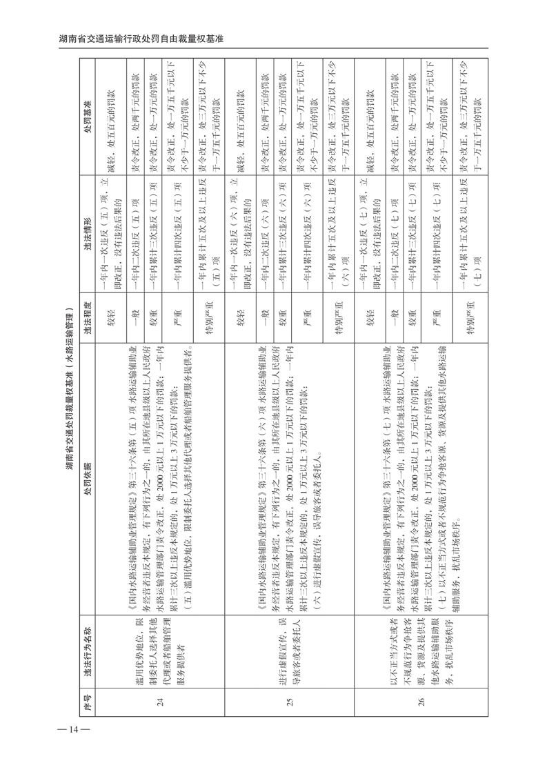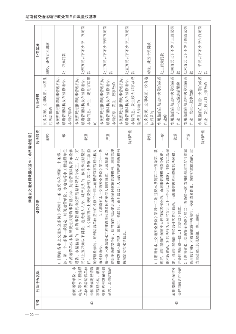 关于印发《湖南省交通运输行政处罚自由裁量权基准》和《湖南省交通运输行政处罚自由裁量权基准实施办法》的通知(下册)