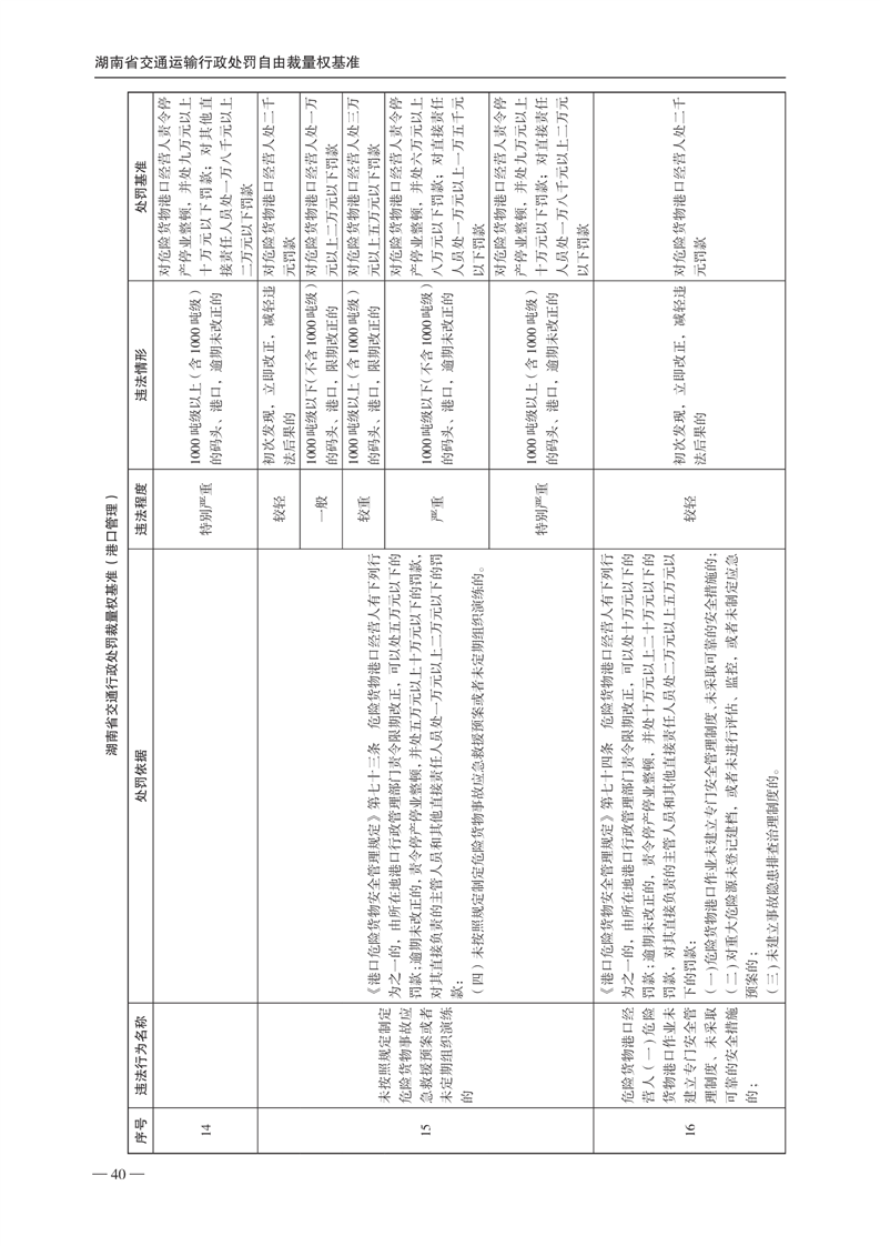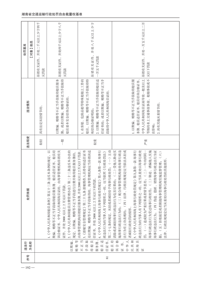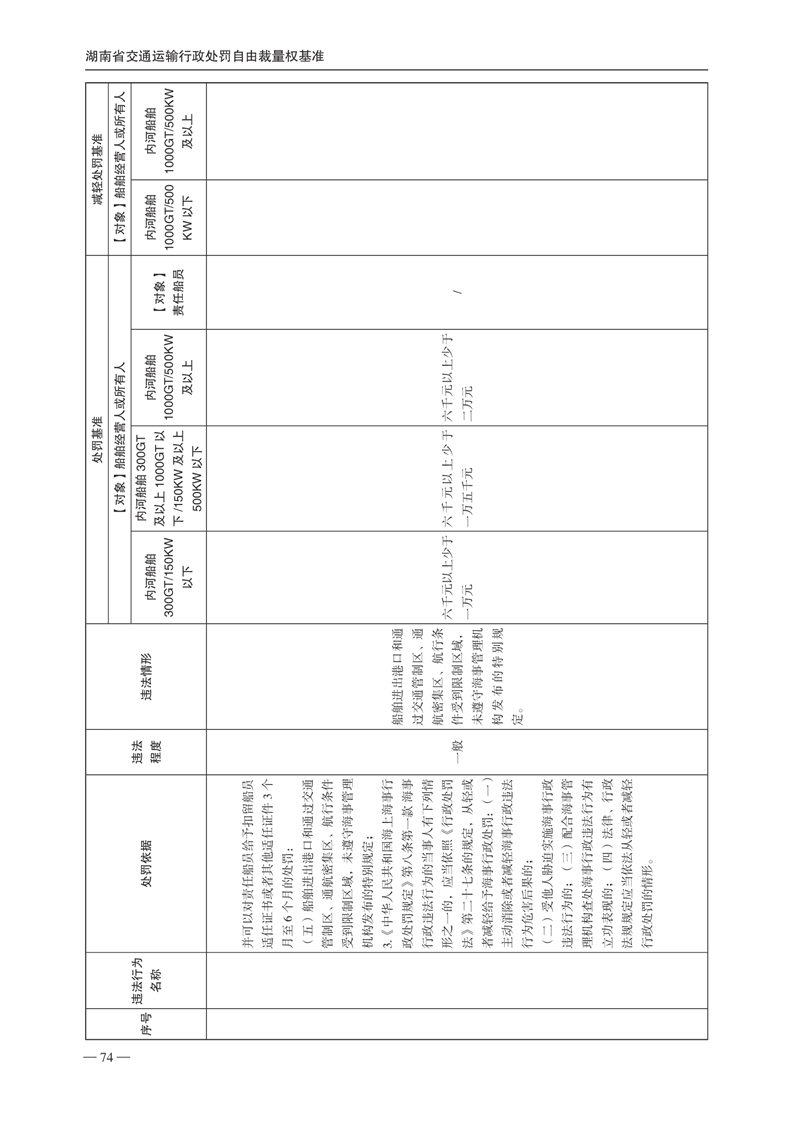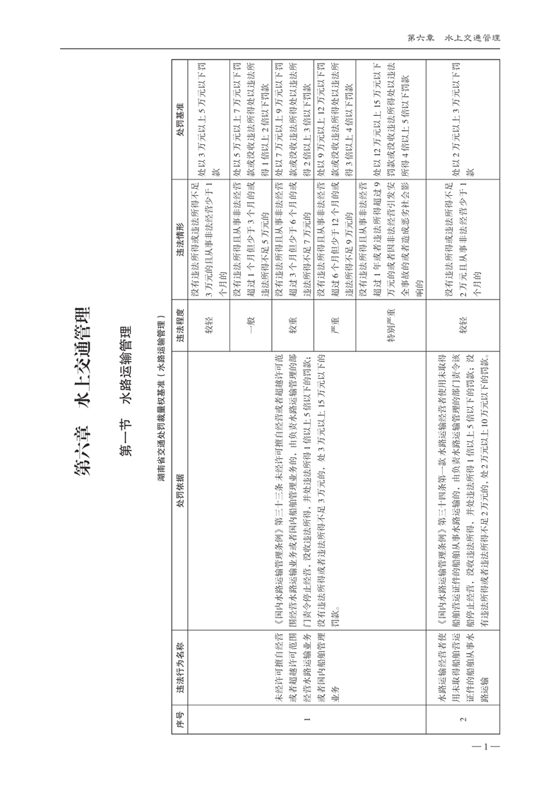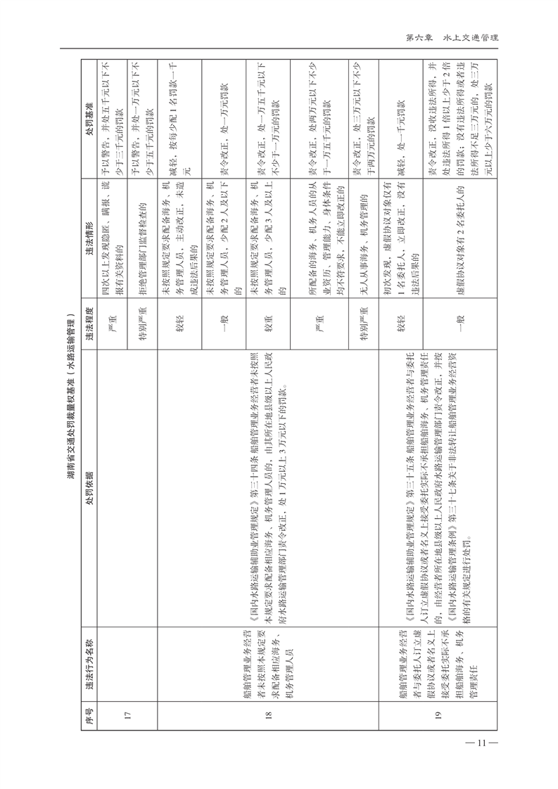 关于印发《湖南省交通运输行政处罚自由裁量权基准》和《湖南省交通运输行政处罚自由裁量权基准实施办法》的通知(下册)