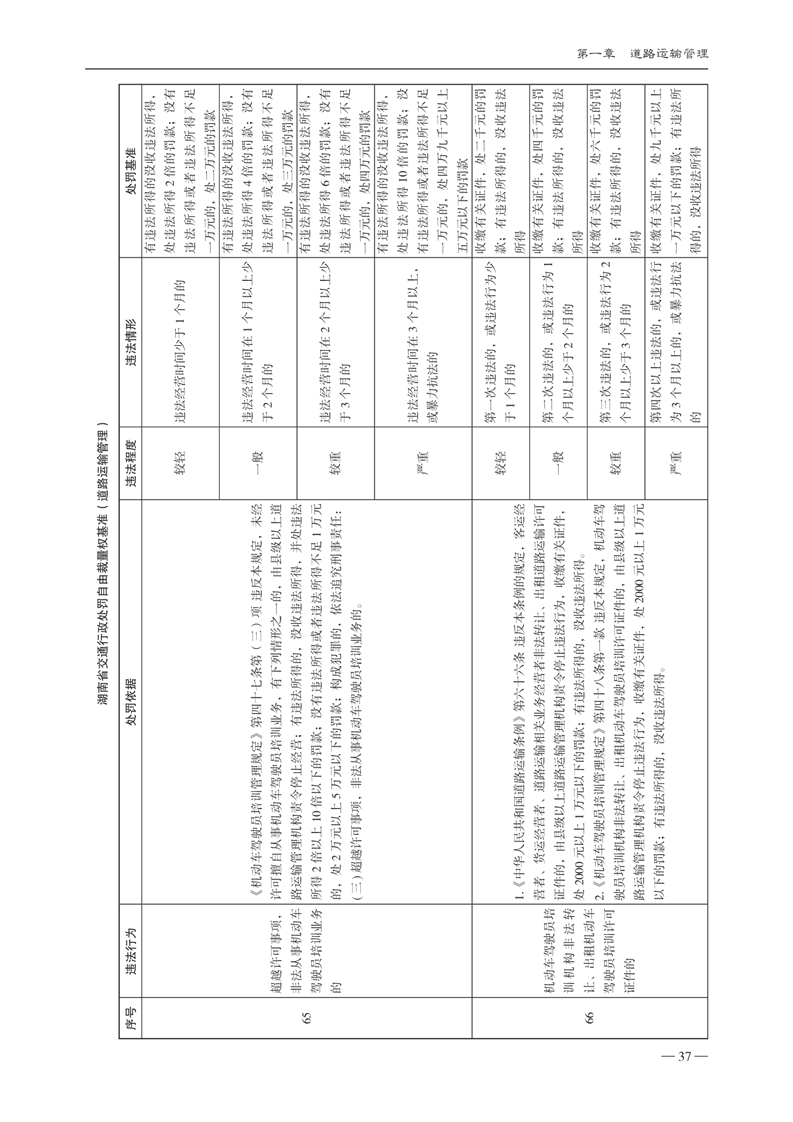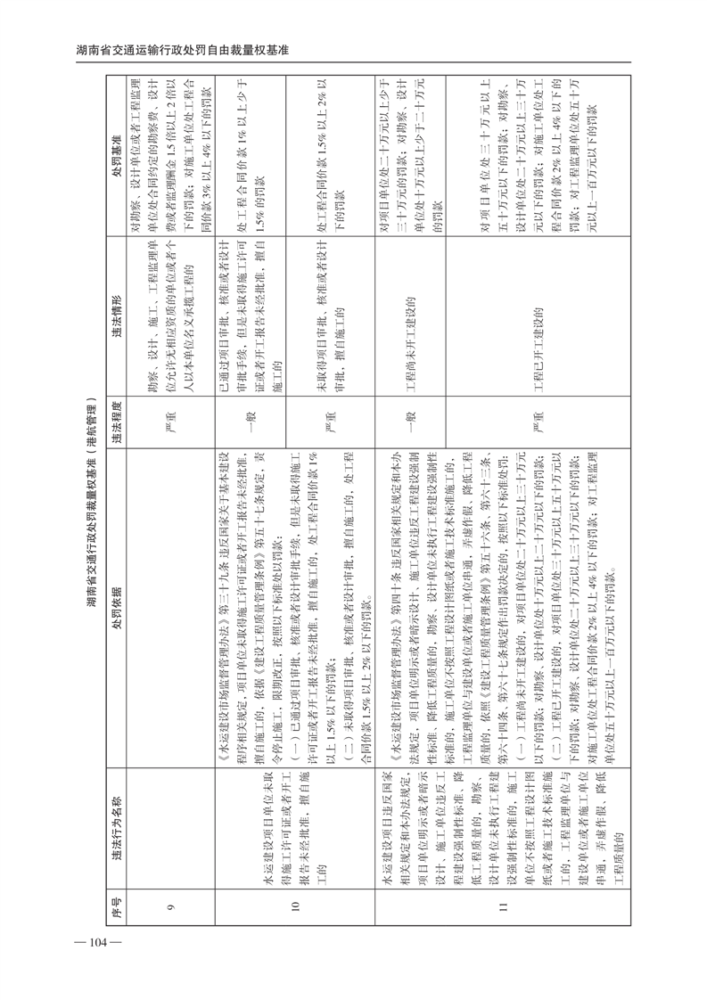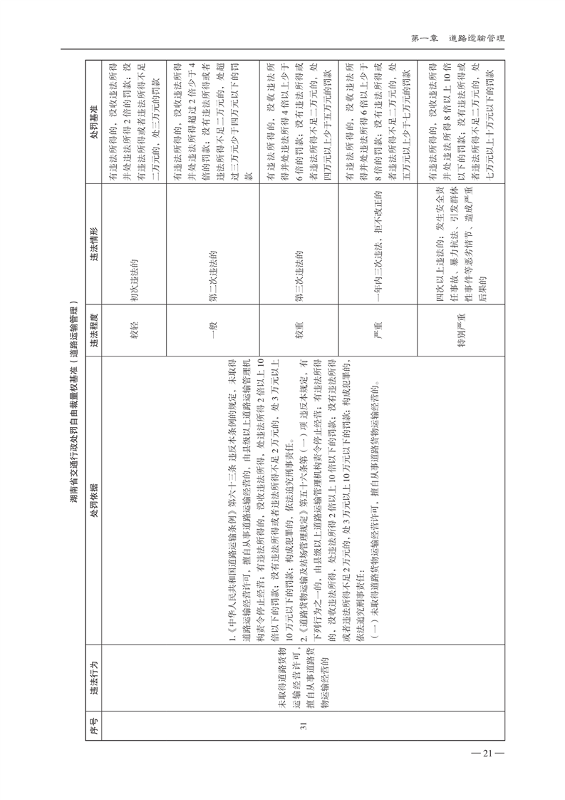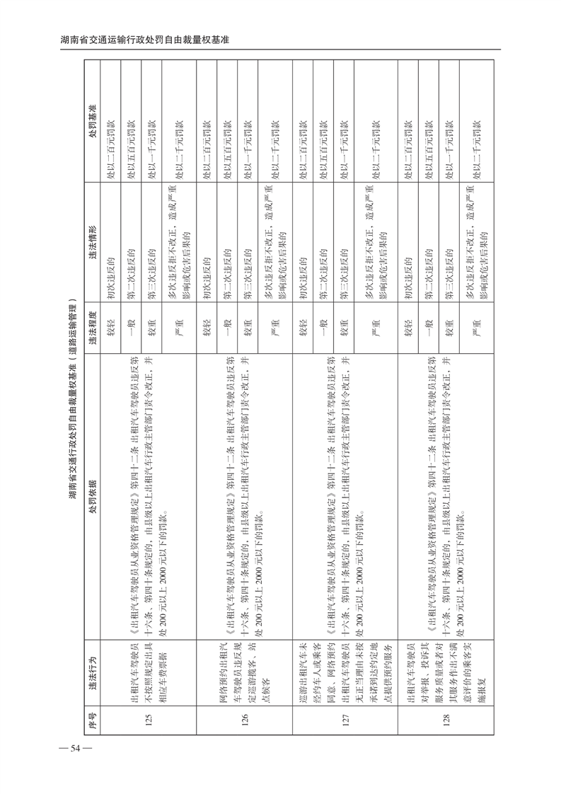 关于印发《湖南省交通运输行政处罚自由裁量权基准》和《湖南省交通运输行政处罚自由裁量权基准实施办法》的通知(上册)