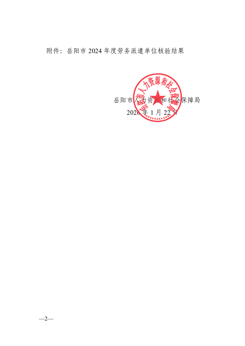关于2024年度岳阳市劳务派遣单位核验结果的通报