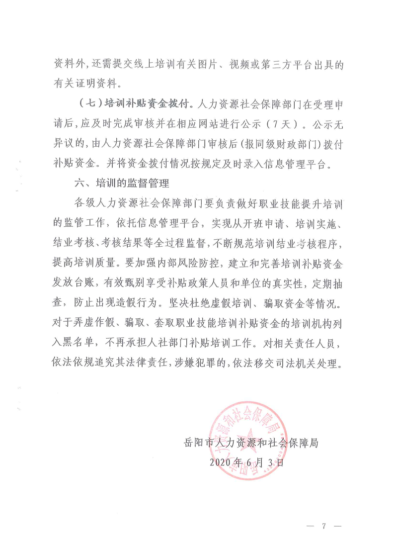 岳阳市人力资源和社会保障局关于进一步明确职业技能提升培训有关政策问题的通知