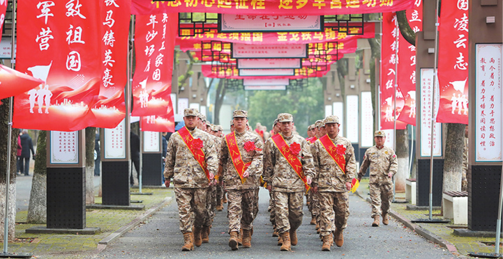 3月16日,随着新兵起运指令下达,来自全市各县市区的首批百余名优秀青年,身着崭新军装,肩披绶带、胸佩鲜花,从岳阳东站登上不同方向的列车,带着家乡的期盼和家人的嘱托,驶向祖国各地。